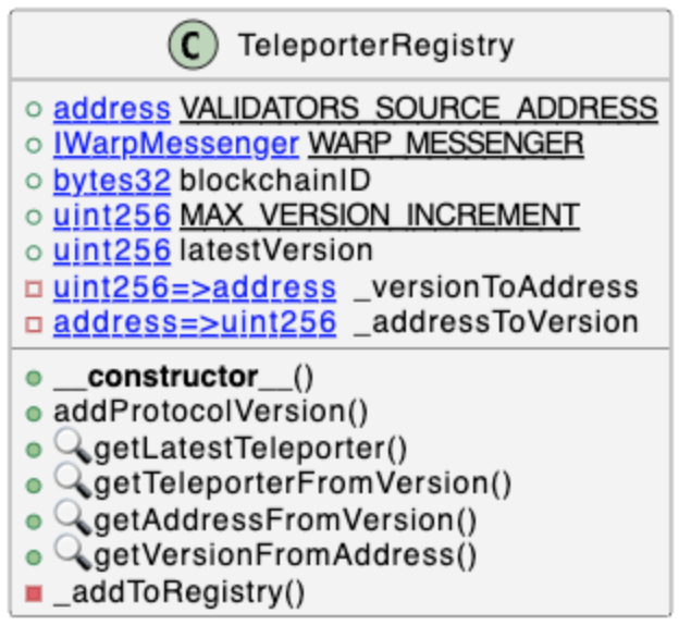 Internally the TeleporterRegistry maintains a mapping of TeleporterMessenger contract versions to their addresses.